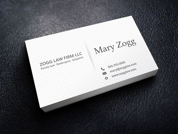 A family law attorney wanted a lawyer new business cards. She wanted a design that would stand out from the others. We came up with a few ideas and presented them. They liked the purple card and wanted to see the same design in mint green so we changed the color and presented that. In the end they decided to use the purple design.