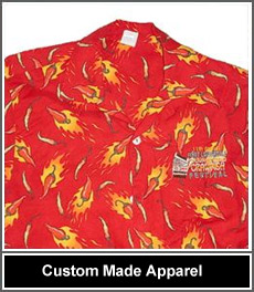 What makes us different is that we can also design and create a uniform for your staff that is uniquely yours. For instance, the city of Fort Lauderdale needed shirts for their staff at a large annual event they host. All of the staff running the event wore these red chili pepper shirts. To fit in with their theme of spicy Cajun foods, we searched the country and found this fabric. We designed, cut, sewed, and embroidered these one-of-a-kind shirts.