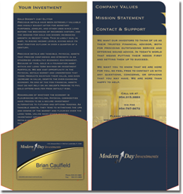 This client is typical of many who start a business on their own but need to look like a bigger, well established more successful business. The client worked for others offering investments in metals where he only earned a small commission. He came to us now he has decided to start his own business. When he speaks with clients he is only a voice on the telephone and needs to gain their trust. Consequently, if people have confidence in him then they are going to invest with him. The business card, website, brochure and letterhead help him to give his clients that confidence they are looking for. By looking like a bigger company this helps him to close the sale.